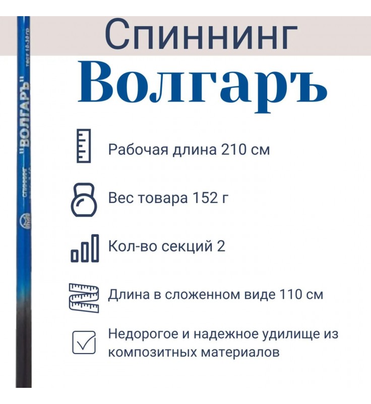 Спиннинг Волжанка "Волгаръ", 2.1 м, тест 5-25 г купить с быстрой доставкой в Могилев, Минск, Витебск, Гродно, Гомель, Брест, РБ